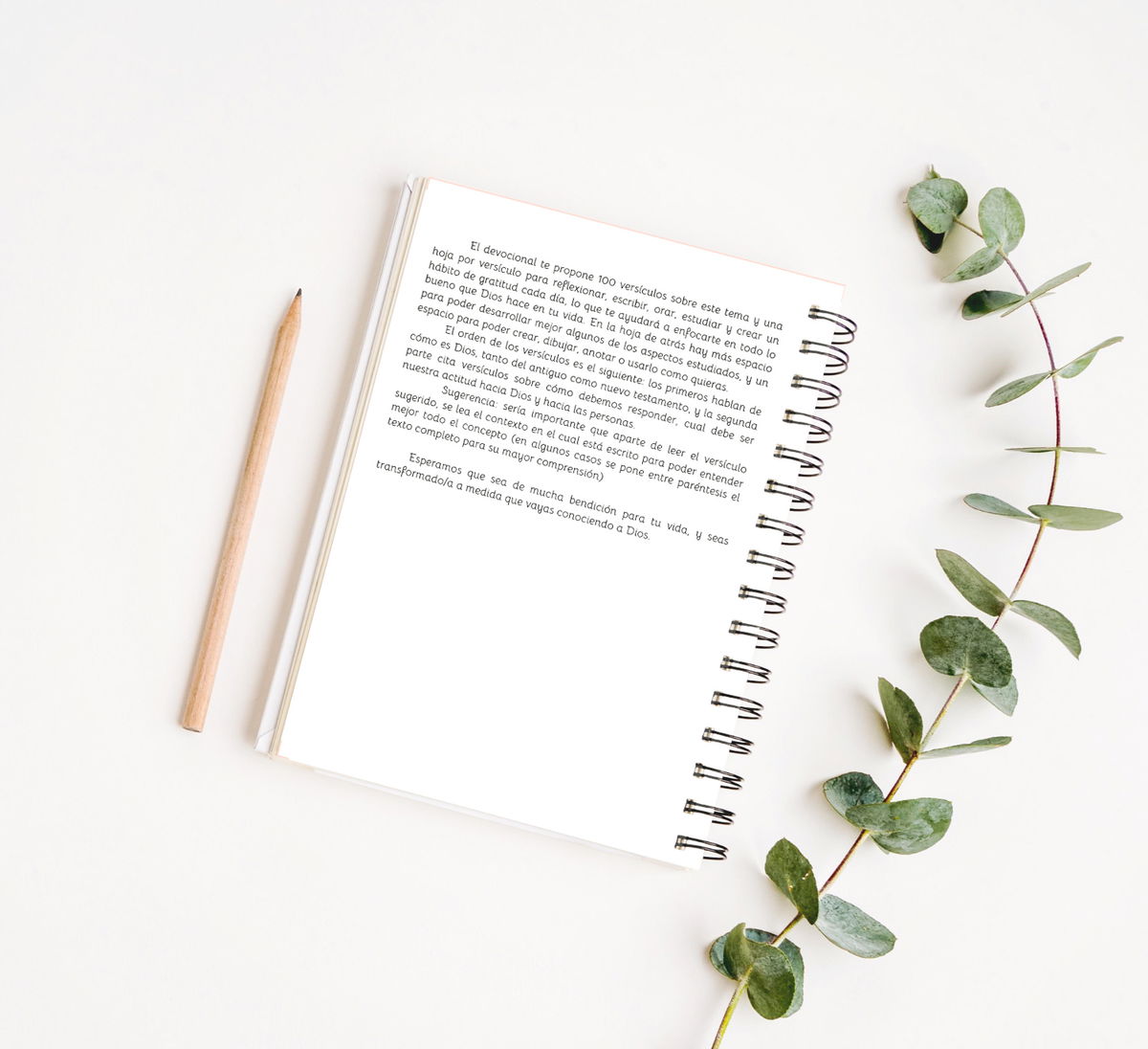 - En cada hoja trae espacio para: escribir el versículo, reflexión, palabras claves, aplicación a nuestras vidas, Gratitud, oración y un hoja entera atrás para profundizar alguno de los temas vistos, y un espacio para crear.