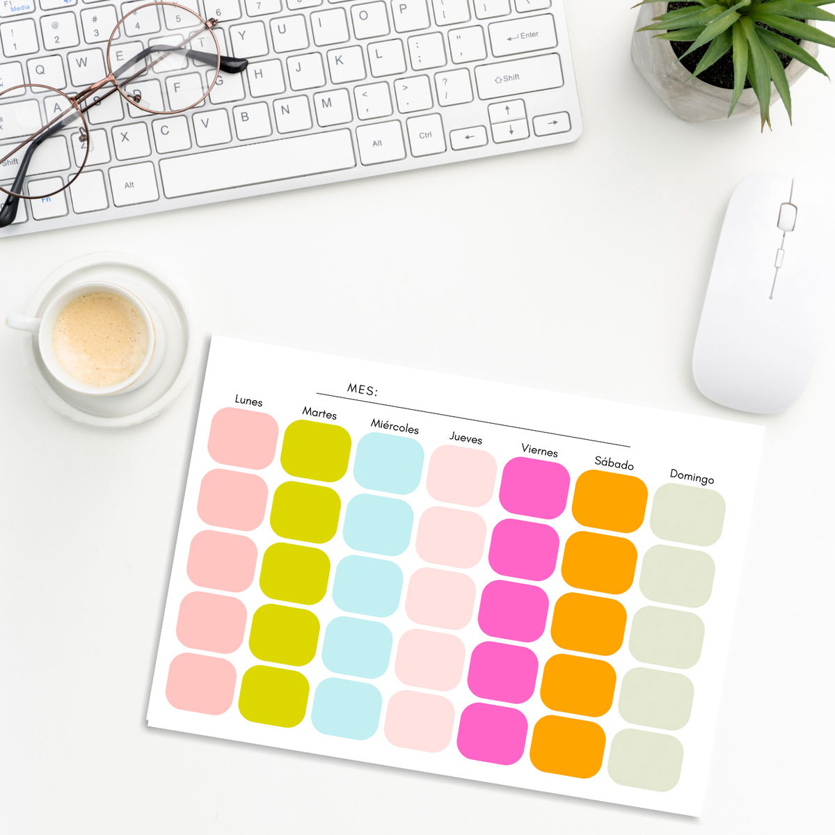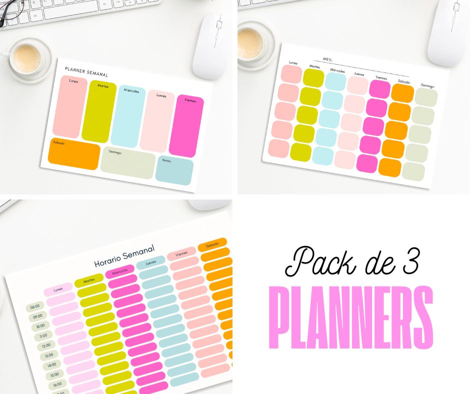 - Ideal para organiar todo el mes: para pegar en la heladera, armar blocks imantados, o encuadernar.