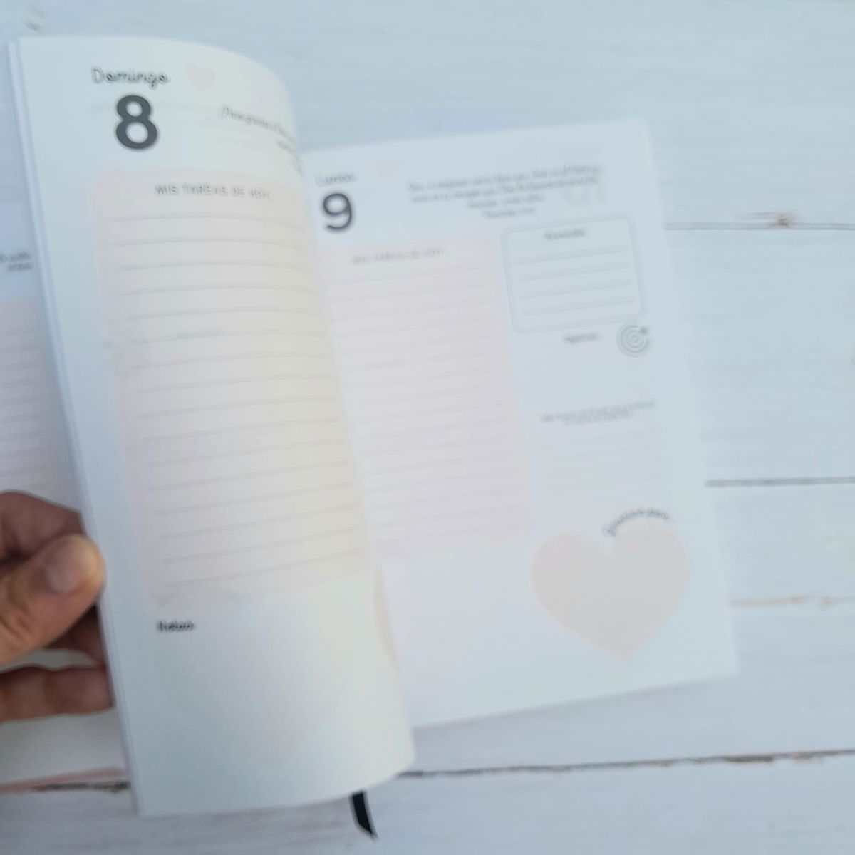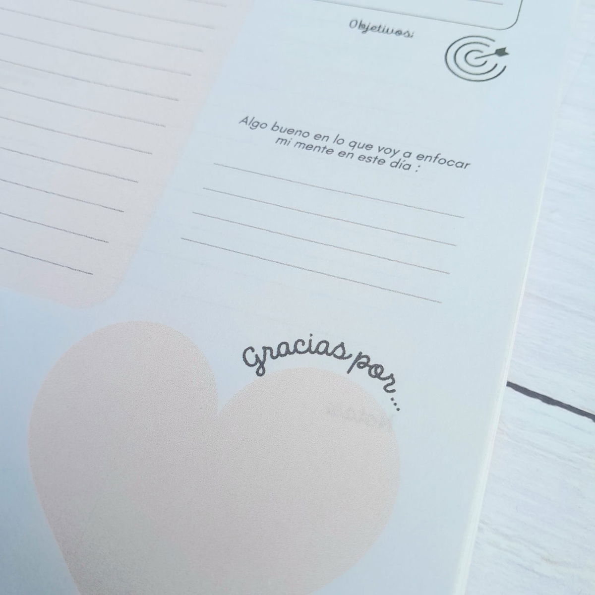 • Espacio diario amplio para organizar tus tareas, oraciones y gratitud.