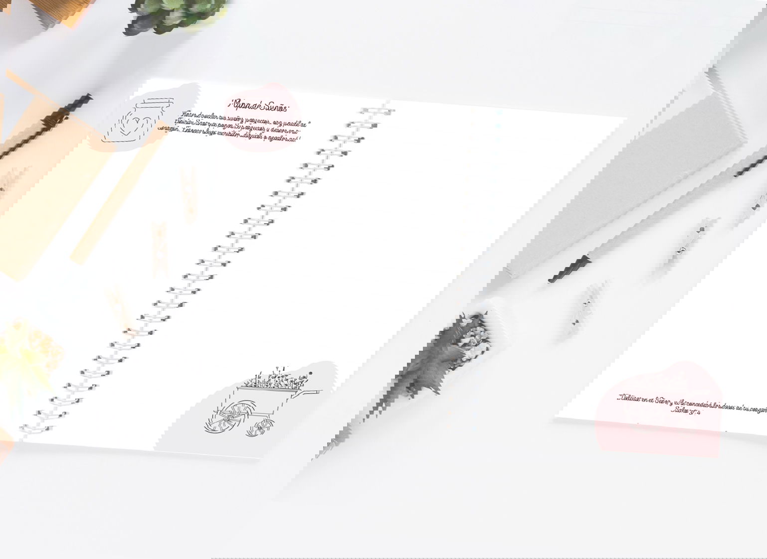 Esta agenda nació para recordarte, cada día, que tu corazón necesita un espacio de calma y de encuentro. Al abrirla, lo primero que vas a encontrar es la Palabra de Dios iluminando tu jornada, y páginas que te invitan a frenar, agradecer, orar y soñar en su presencia.