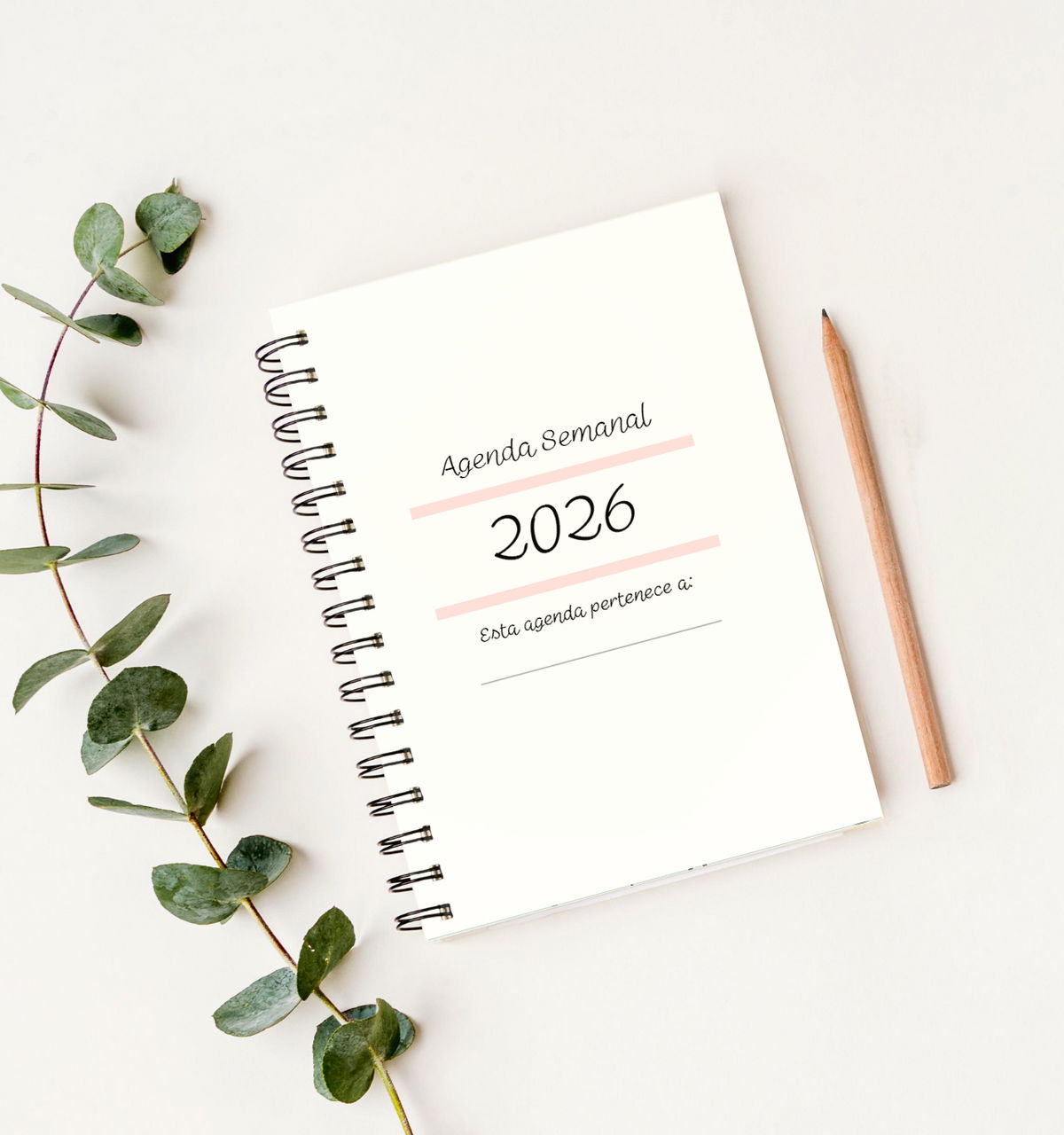 Agenda con Semana a la vista de todo el año 2026 fechada.