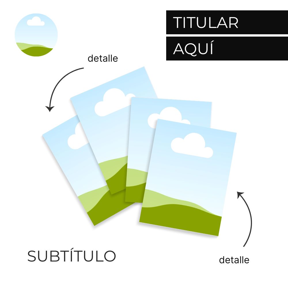 • Usas tus fotos o diseños y los reemplazas para armar tu diseño, cambias títulos, descripciones, agregás tu logo y mucho más. Podés modificar 100% cualquiera de las plantillas y usarlas como propias.