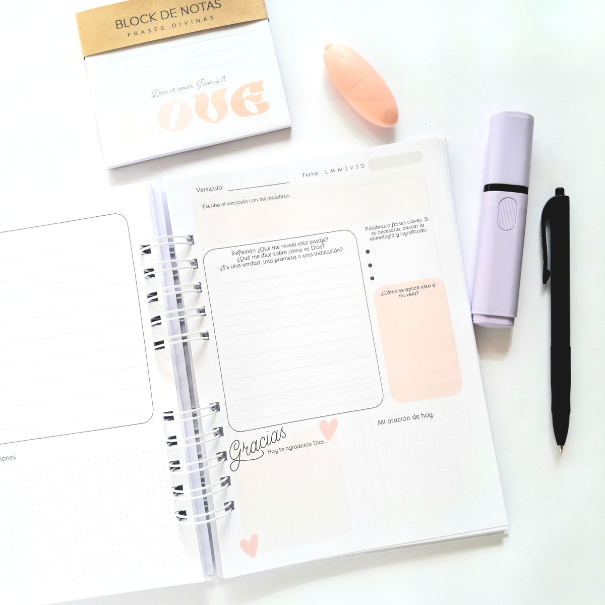 β Tapas de cuadernos cristianos + hojas con versiculos