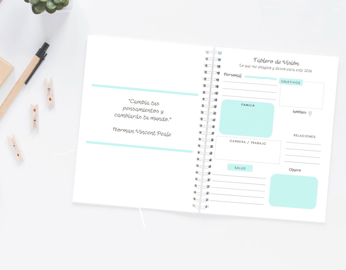 Una agenda para lograr metas, con frases que te motivan durante todo el año!