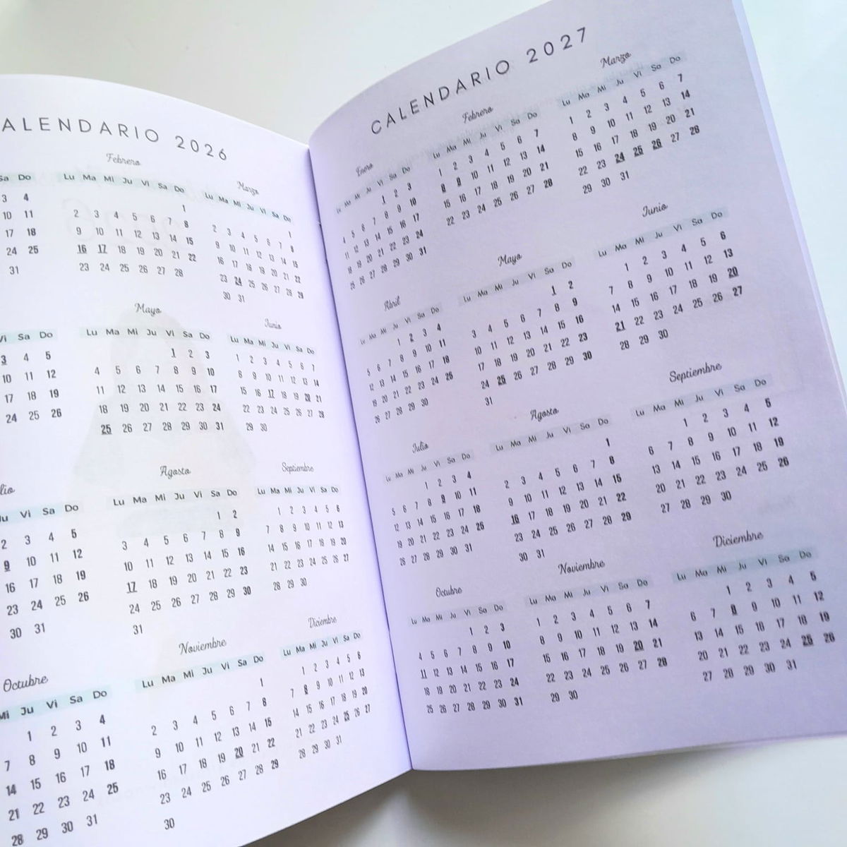 - Calendarios 2026 y 2027 completos con feriados remarcados
