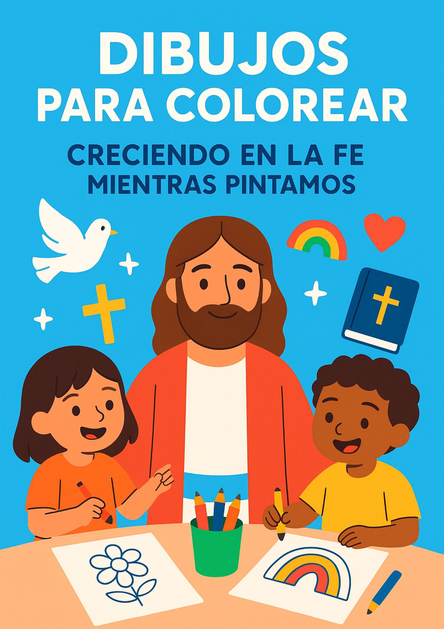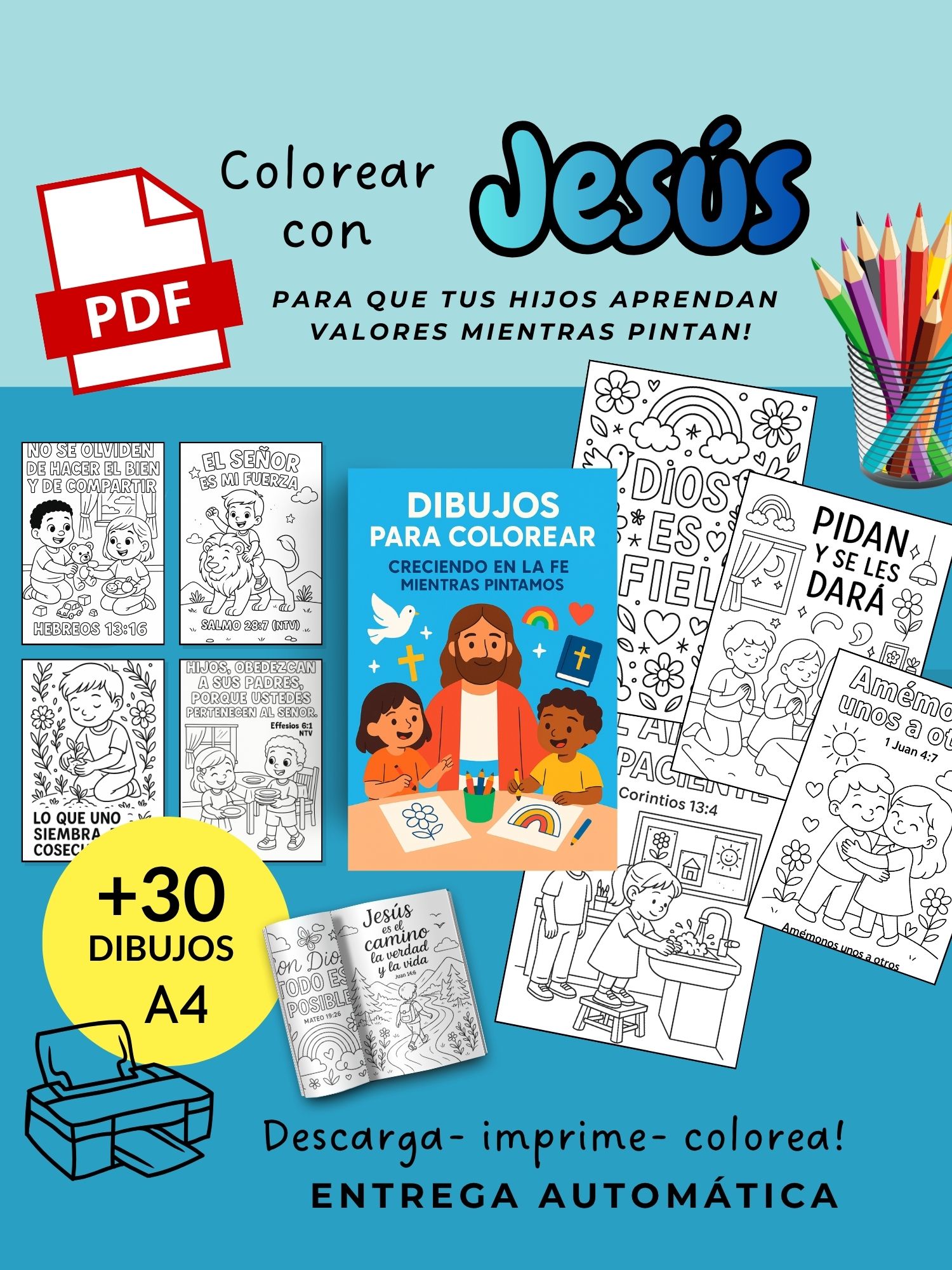 Dibujos listos para imprimir y colorear, un recurso para que los chicos puedan aprender sobre Jesús, la Biblia y valores cristianos mientras pintan.