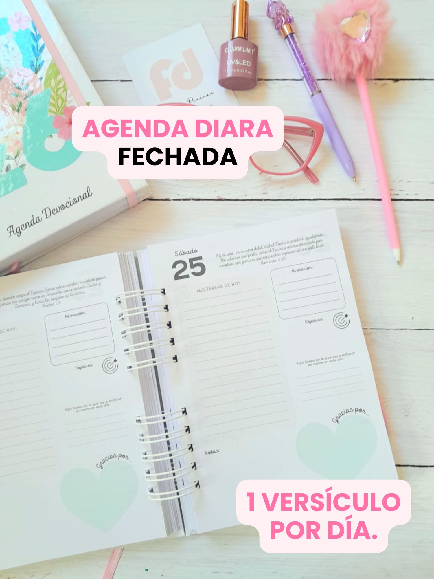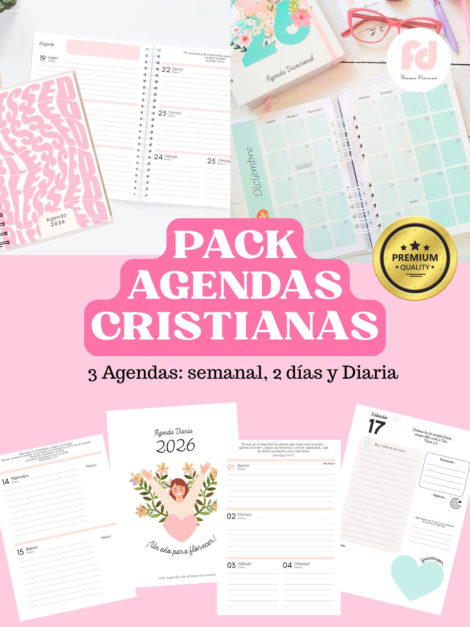Llevate el Combo Rosa de Agendas Cristianas 2026- Agenda Semanal, 2 días x Página y Diaria!
